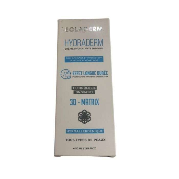 La ECLADERM Hydraderm Crème Hydratante Intense 72H 50 ml est formulée pour répondre aux besoins des peaux déshydratées à sèches. Grâce à sa technologie hydratante avancée, elle aide à maintenir une hydratation continue jusqu’à 72 heures, tout en renforçant la barrière cutanée.
