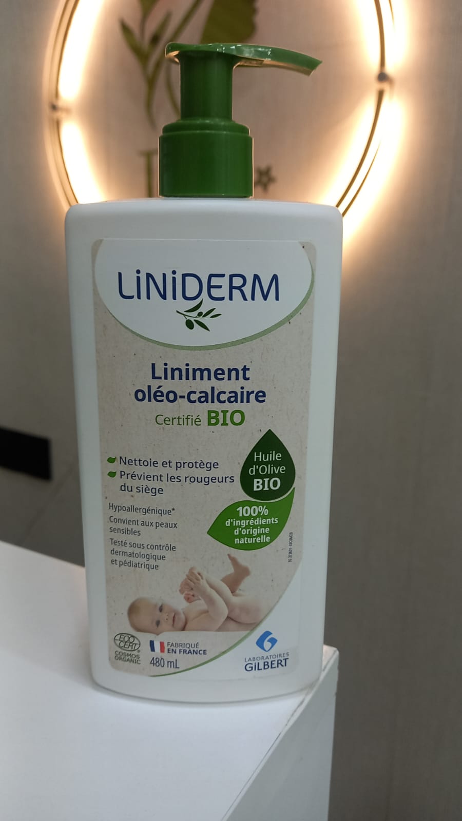 LINIDERM Liniment 480 ml avec pompe est formulé pour nettoyer et protéger la peau délicate du siège de bébé. Riche en huile d’olive et sans ajout superflu, il prévient les irritations et forme une barrière protectrice contre l’humidité. Sa texture onctueuse s’applique facilement et ne nécessite pas de rinçage. Le flacon pompe permet une utilisation hygiénique et rapide, même d’une seule main. Convient dès la naissance et pour les peaux sensibles. Disponible à Casablanca, livrable dans tout le Maroc, avec retrait possible en parapharmacie.